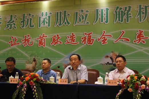 農(nóng)業(yè)部飼料工業(yè)中心副主任、國家飼料工程技術(shù)研究中心副主任、中國農(nóng)業(yè)大學(xué)教授譙仕彥博士在會上做了《抗菌肽研究進(jìn)展與應(yīng)用趨勢》的報告。闡述了抗菌肽的機(jī)理和作用,抗菌肽是生物體內(nèi)經(jīng)誘導(dǎo)產(chǎn)生的一種具有生物活性的小分子多肽,分子量在2000~7000左右,由20~60個氨基酸殘基組成??咕牡目咕V比傳統(tǒng)抗生素更寬,既有抗革蘭氏陽性菌和革蘭氏陰性菌的作用,又有抗真菌和病毒的作用??咕牡淖饔门c其對病原菌細(xì)胞膜的迅速破壞相關(guān),并且抗菌肽的作用不涉及特定的靶位,完全是陰陽離子的物理作用,而不改變細(xì)菌表面的結(jié)構(gòu)和帶電性能,因此抗菌肽幾乎不產(chǎn)生抗藥性。譙博士還詳細(xì)講解了抗菌肽在各個領(lǐng)域的應(yīng)用,其中特別分析了在動物上應(yīng)用抗菌肽的實(shí)驗(yàn)數(shù)據(jù)和研究成果。
