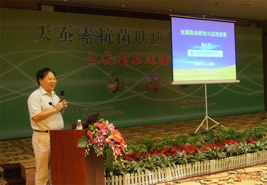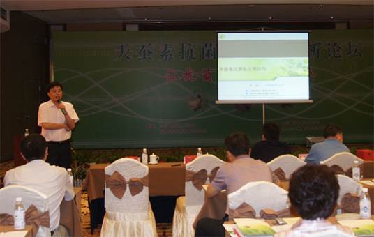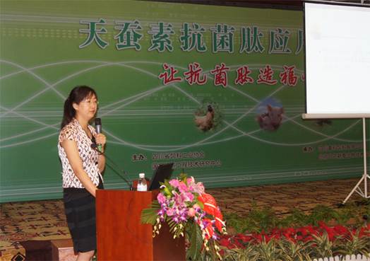 中農(nóng)穎泰公司李波博士向與會代表介紹了天蠶素抗菌肽的應(yīng)用技巧。天蠶素是第一個被發(fā)現(xiàn)的動物抗菌肽,大量研究結(jié)果表明,天蠶素抗菌肽可以替代金霉素、桿菌肽鋅等常用飼用抗生素,并具有促進(jìn)動物生長、增強(qiáng)免疫功能,改善畜產(chǎn)品品質(zhì)、增進(jìn)人類健康等功能。李博士對天蠶素抗菌肽在國內(nèi)的研究動向,并從其安全性、生物特性、穩(wěn)定性等方面進(jìn)行闡述。還展示了在大鼠、肉雞、仔豬及水產(chǎn)上的實(shí)驗(yàn)效果,并根據(jù)實(shí)驗(yàn)結(jié)果提出了相應(yīng)的飼喂方案。