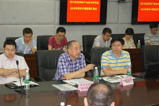 您當(dāng)前位置: 網(wǎng)站首頁(yè) > 新聞媒體 > 畜科動(dòng)態(tài)2015年7月28日上午,四川科創(chuàng)飼料產(chǎn)業(yè)技術(shù)研究院在四川農(nóng)業(yè)大學(xué)溫江校區(qū)舉行了項(xiàng)目中期進(jìn)展匯報(bào)會(huì)。理事長(zhǎng)鄺聲耀、院長(zhǎng)吳德以及四川農(nóng)業(yè)大學(xué)、四川省畜牧科學(xué)研究院、四川省畜科飼料有限公司、四川新希望畜牧科技有限公司、通威股份有限公司、四川鐵騎力士實(shí)業(yè)有限公司、四川乾坤生物科技有限公司七家共建單位項(xiàng)目組負(fù)責(zé)人、成員共計(jì)35人參會(huì)。