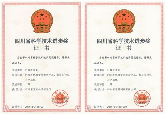 “飼用有機微量元素新產(chǎn)品、新技術研究與產(chǎn)業(yè)化”榮獲省政府科技進步二等獎,成果由省畜科院、畜科公司、全國畜牧總站、川農(nóng)大、特驅集團和科創(chuàng)產(chǎn)研院共同完成。項目創(chuàng)制了國家重點新產(chǎn)品——飼料添加劑乳酸鋅,主持制訂了乳酸鋅國家標準,填補了國內外空白;研制了有機鐵、鉻和硒,運用新技術,提高了產(chǎn)品的質量和安全性;優(yōu)選出富硒能力強的酵母菌株,使有機硒的含量提高2倍;制定了有機微量元素系統(tǒng)應用方案,解決了其在動物上的應用問題。項目獲國家授權發(fā)明專利5件,實用新型專利9件,產(chǎn)品及技術在國內16個省市及東南亞國家推廣應用,新增純收益18.8億元,新增養(yǎng)殖效益80.4億元,經(jīng)濟、社會和生態(tài)效益顯著。