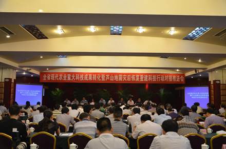 您當(dāng)前位置: 網(wǎng)站首頁 > 新聞媒體 > 畜科動(dòng)態(tài)2013年8月5日上午,全省現(xiàn)代農(nóng)業(yè)重大科技成果轉(zhuǎn)化暨蘆山地震災(zāi)后恢復(fù)重建科技行動(dòng)對(duì)接推進(jìn)會(huì)在雅安市紅珠賓館隆重舉行。會(huì)議由省科技廳和雅安市政府共同舉辦,省委常委、省委農(nóng)工委主任李昌平出席會(huì)議并發(fā)表重要講話。省委農(nóng)工委、省科技廳、省農(nóng)業(yè)廳、省水利廳、省林業(yè)廳、省畜牧食品局、省糧食局等部門和雅安市有關(guān)負(fù)責(zé)人等100余人出席會(huì)議。會(huì)上,省委李昌平常委為四川科創(chuàng)飼料產(chǎn)業(yè)技術(shù)研究院授了牌。