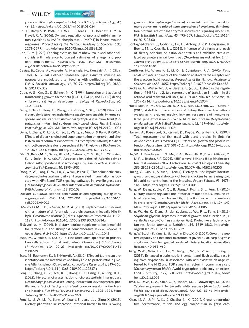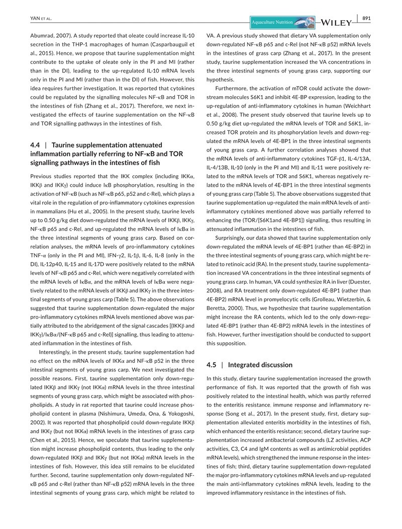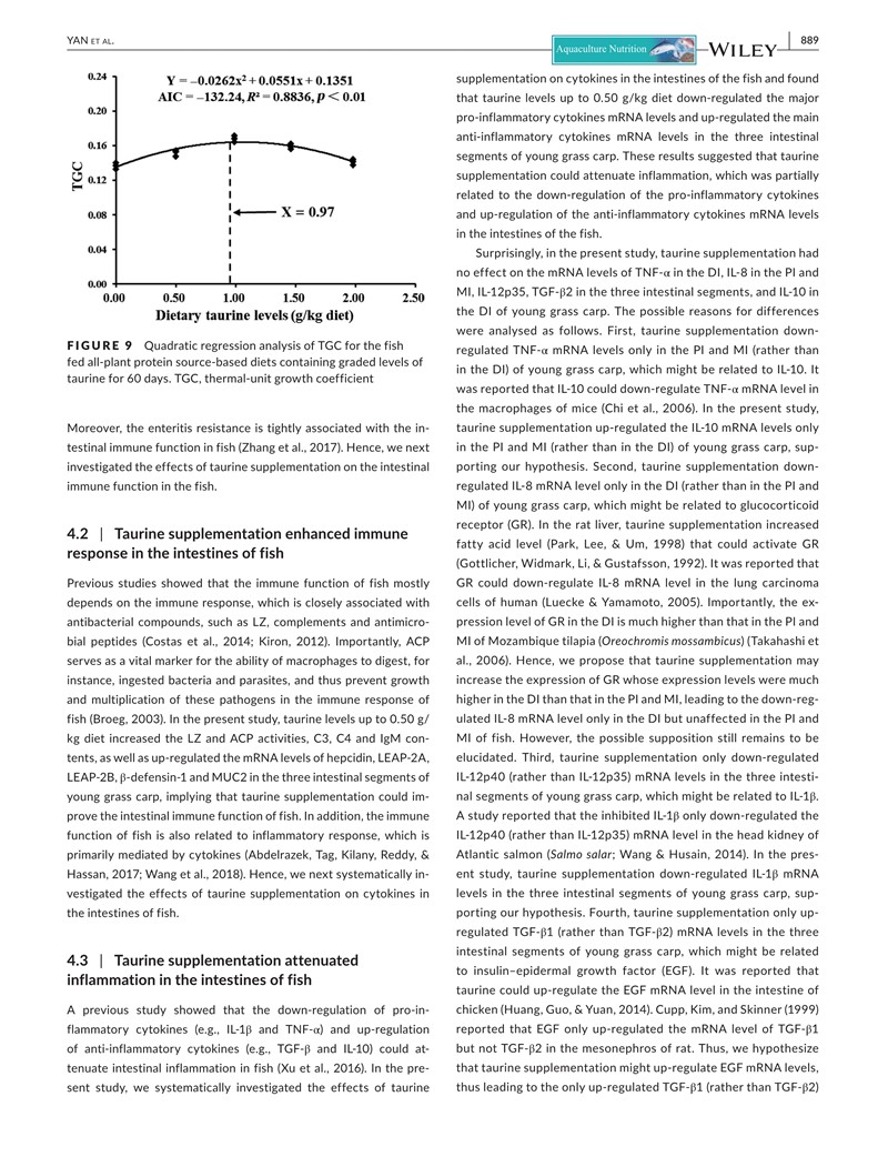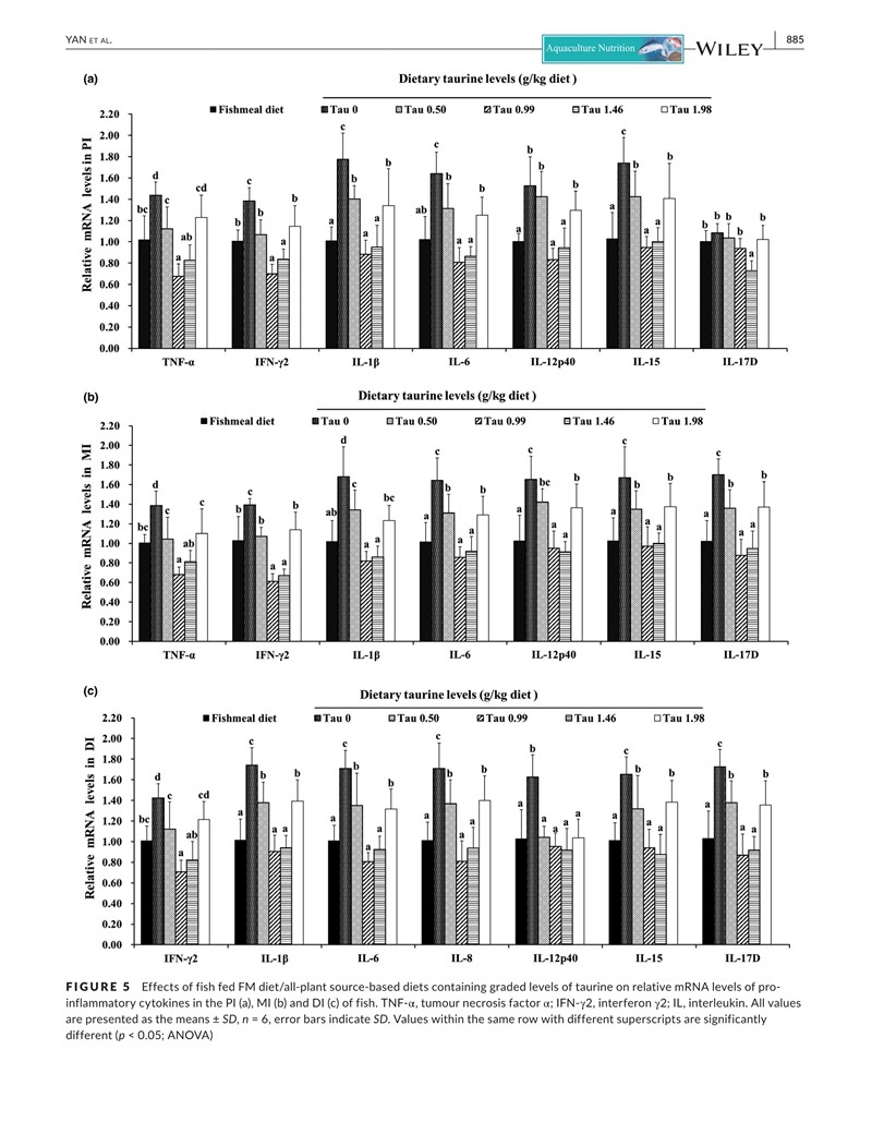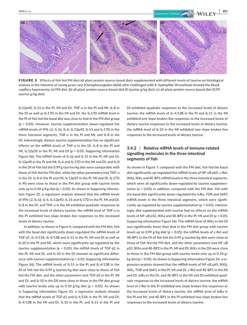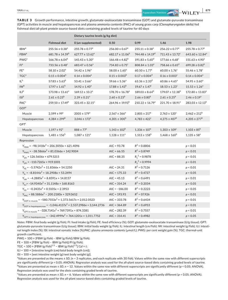 Dietary taurine supplementation to a plant protein source‐based diet improved the growth and intestinal immune function of young grass carp (Ctenopharyngodon idella)