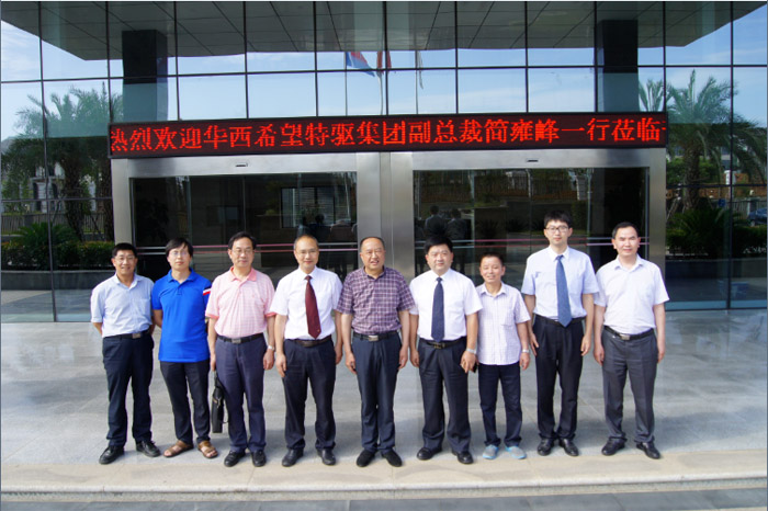 首先華西希望·特驅(qū)集團(tuán)副總裁簡雍鋒、華西希望·特驅(qū)集團(tuán)管理部副部長曾民、華西希望·特驅(qū)集團(tuán)生產(chǎn)技術(shù)部羊云飛博士一行在華神公司董事長鄺聲耀、副總黃德興、副總李書偉、華神常務(wù)副總陰文奇等領(lǐng)導(dǎo)的陪同下,參觀了華神公司廠區(qū)、生產(chǎn)車間、研發(fā)中心。