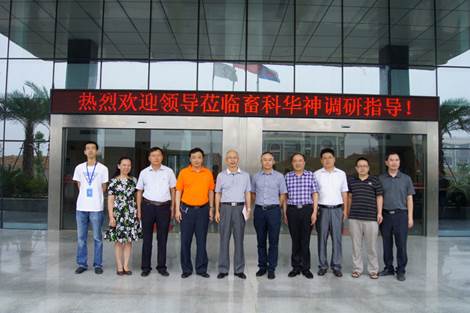 2015年8月12日,在四川省畜牧科學(xué)院蔣小松院長(zhǎng),四川科創(chuàng)飼料產(chǎn)業(yè)技術(shù)研究院理事長(zhǎng)、華神生物公司董事長(zhǎng)鄺聲耀等人的陪同下,國(guó)家科技部農(nóng)村司蔣丹平副司長(zhǎng)、許增泰處長(zhǎng)、科技部農(nóng)村開發(fā)中心盧兵友處長(zhǎng)、四川省科技廳副廳長(zhǎng)韓忠成、副處長(zhǎng)游曉峰、四川省農(nóng)科院副院長(zhǎng)任光俊、川農(nóng)大賈剛教授一行蒞臨成都雙流西航港經(jīng)濟(jì)開發(fā)區(qū)的四川科創(chuàng)飼料產(chǎn)業(yè)技術(shù)研究院和四川華神獸用生物制品有限公司進(jìn)行調(diào)研指導(dǎo)。